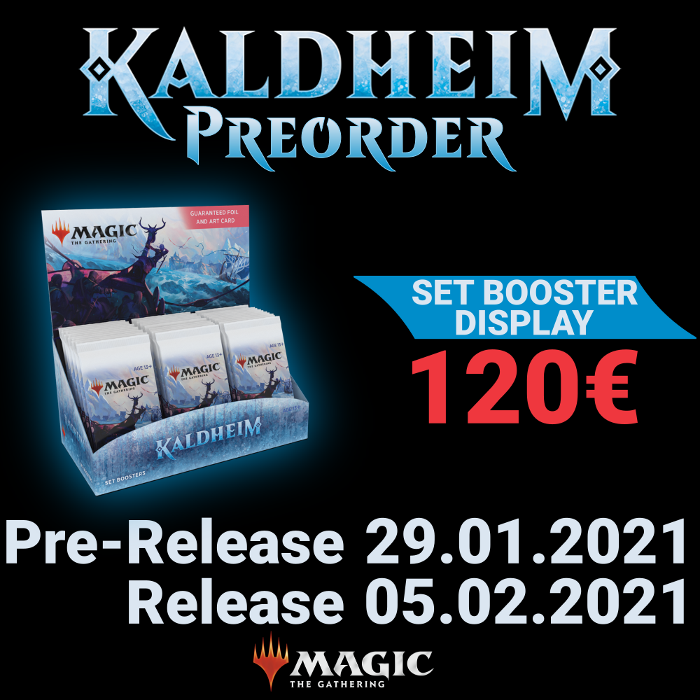 Das Set Kaldheim wurde von Wikingern und Metal inspiriert. Mit Kaldheim erscheinen auch zwei neue Commander-Decks. Die mit Zendikars Erneuerung eingeführten Set-Booster wurden für Kaldheim überarbeitet. Sie enthalten nun zum Teil eine besondere thematische Karte, die in den Draft-Boostern nicht zu finden ist. Außerdem wurde die kuratierte Liste von 300 Karten von Wizards an das Set angepasst.